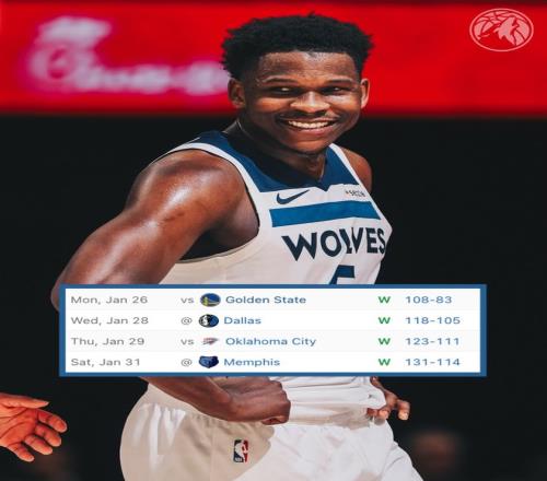 森林狼131-114大勝灰熊拿到四連勝,愛德華茲拿到33分3助攻,蘭德爾27+7+7,麥克丹尼爾斯20+4,里德20分9籃板5助攻,森林狼這一波四連勝后已經(jīng)穩(wěn)穩(wěn)壓制湖人、太陽(yáng),他們險(xiǎn)些跟火箭的勝場(chǎng)持平,但火箭擊敗獨(dú)行俠后再度領(lǐng)先森林狼0.5個(gè)勝場(chǎng)。