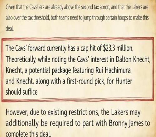 另一邊,對(duì)騎士而言,他們是近兩個(gè)賽季聯(lián)盟支出最多的球隊(duì)之一,卻并沒(méi)有取得預(yù)期的成績(jī),目前僅以29勝21負(fù)排在東部第五,他們迫切想要擺脫亨特下賽季近2500萬(wàn)美元的合同。