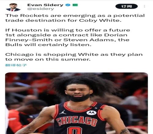 名記Sidery也表示,火箭成為懷特的潛在下家之一,公牛正在評估交易方案。