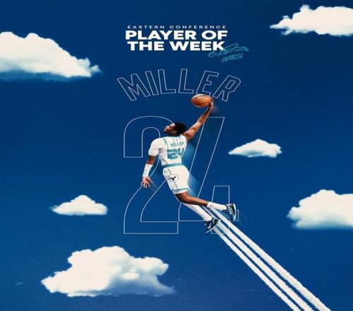 過(guò)去一周,米勒率領(lǐng)黃蜂打出4勝0負(fù)的戰(zhàn)績(jī),場(chǎng)均貢獻(xiàn)26.3分5.8籃板2.3助攻,三分命中率50%。