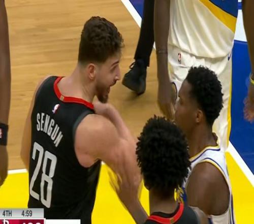 于是在比賽當中,申經(jīng)多次和對手發(fā)生過沖突,打得好得同時也是火力全開,甚至還和對方球員發(fā)生過不止一次的沖突。申京和對手發(fā)生過兩次沖突,倒地搶球的時候有過一次,更主要的是單挑馬瑟林的時候,轉(zhuǎn)身上籃被對面推了一下腰。他當場就急眼了,返身就要揍馬瑟林,兩邊互相推搡,申京甚至非常罕見的伸出右手一肘子錘在了對面的胸口。