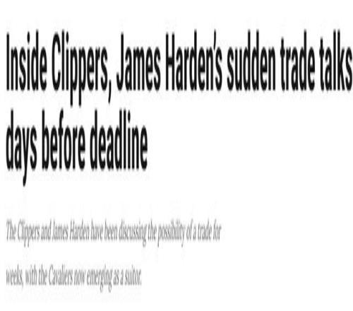 盡管交易談判一直在進行,但哈登在此期間始終留在球隊陣容中,幾乎出戰(zhàn)了快船隊的所有比賽。不過雙方達成了共識,都會嘗試在2月6日NBA交易截止日前促成一筆交易。