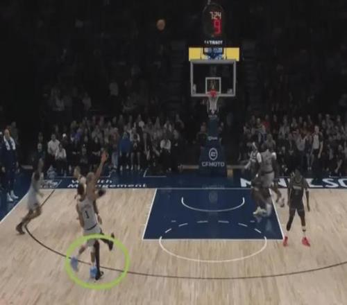 關鍵時刻,森林狼自己也在犯錯,戈貝爾就在文班亞馬出手投三分球之后來不及收腳,于是文班亞馬踩到了戈貝爾的腳。
