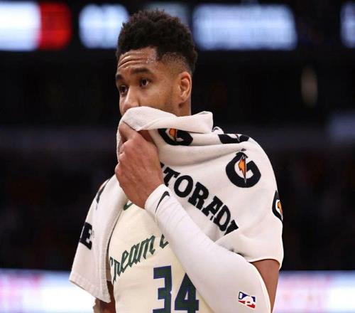 值得注意的一幕發生在第四節,當時比賽已經失去懸念,字母哥被換下場,然后他坐在替補席用毛巾擦臉,隨后又搖了搖頭。