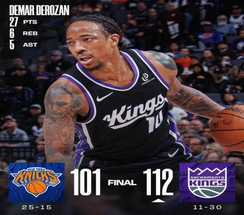 末節決戰,尼克斯發起瘋狂反撲,但是國王總是能夠在進攻端給予回應。薩克拉門托進攻勢頭下滑,紐約眾將連續掀起得分狂潮,并一度將分差縮小至9分。關鍵時刻,威少高難度打板命中,國王重新取得11分領先就此收下比賽。時間所剩不多,尼克斯無力回天。最終,國王以112比101力克對手,就此斬獲3連勝。