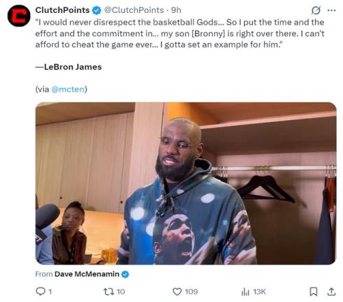 在這場比賽后,詹姆斯接受ESPN記者戴夫-麥克梅納明采訪,他說道:我絕對不會褻瀆籃球之神,我為了這項我熱愛的運動投入了時間、精力、努力。我的兒子就在場邊看著,我是絕對不會辜負這項運動的,我必須為他樹立榜樣。
