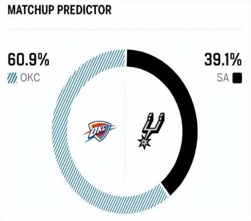 賽前,美媒ESPN對本場比賽進行了勝率預測,馬刺隊勝率僅有37.6%,意外不被看好,傷兵滿營的雷霆隊勝率依舊高達62.4% ,讓人疑惑。