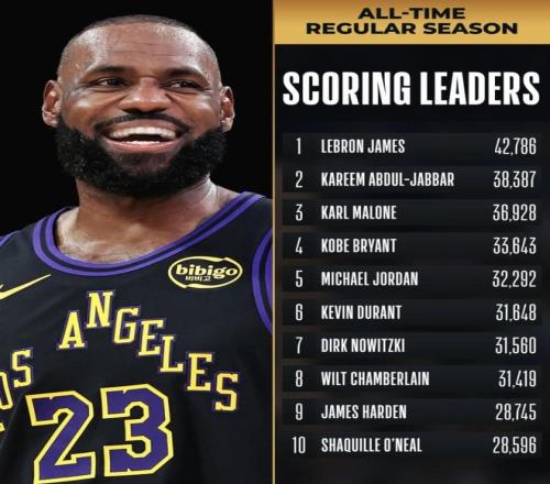 再往上看,科比33,643分、卡爾·馬龍36,928分都在更遠的位置上,差距已經不是“短時間幾場球”能追完的級別。
