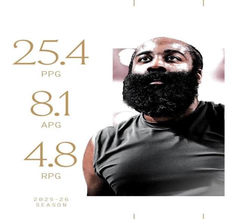 騎士還為哈登制作了歷史榮譽(yù)海報(bào):11次全明星、6次一陣、3次得分王、2次助攻王。