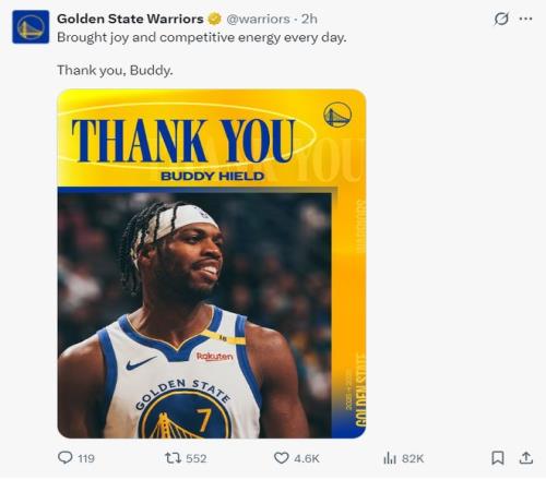 勇士官方也感謝了希爾德、庫明加,這兩被送到老鷹。
