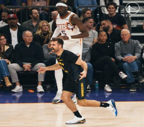 這場(chǎng)比賽勇士用了一套先發(fā)五小,科爾就希望用空間來打太陽,太陽這邊雖然有尺寸優(yōu)勢(shì)但他們也沒有一定要狠揍勇士?jī)?nèi)線,馬威首節(jié)3中3拿6分5籃板1蓋帽,狄龍依舊是太陽的主攻點(diǎn)他首節(jié)拿到8分。斯潘塞與小佩頓連續(xù)命中三分,這就是科爾要的,首節(jié)勇士就命中7個(gè)三分球,首節(jié)打完勇士25-29落后太陽。