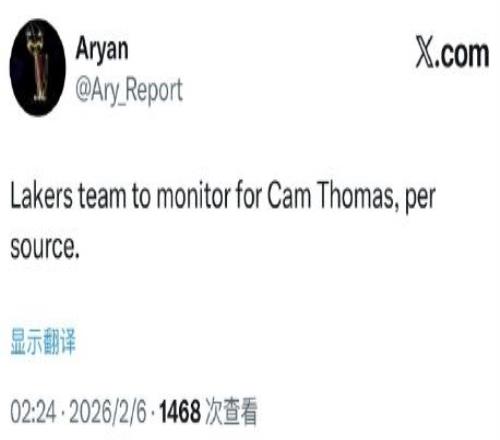 NBA記者Aryan:湖人密切關(guān)注卡梅倫-托馬斯!