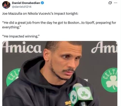 面對武切維奇這樣的表現,賽后主帥馬祖拉稱贊到:“從他到波士頓那一天起,他就全力以赴,為每場開打的比賽做好準備,他也用實際行動左右了比賽的勝負走向。”