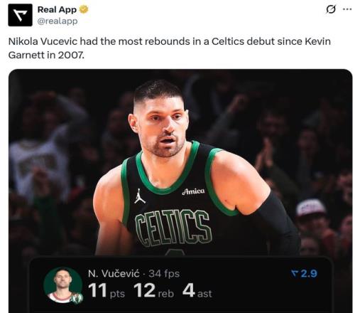憑借這樣的表現,武切維奇首秀就打破紀錄,成為07年加內特(20個)后綠軍首秀搶下最多籃板的球員。