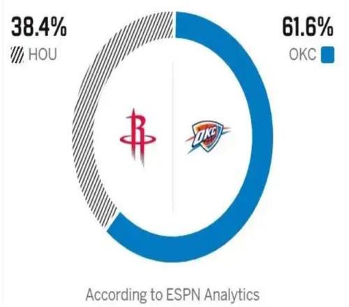 雷霆這邊問題不大,主力缺陣,角色球員均能站出來承擔責任,上一場雖然不敵馬刺,但仍有3人砍下20+。但是火箭當下的困境不僅僅是傷病這么簡單,進攻端空間糟糕,僅杜蘭特能穩定輸出,申京近期狀態低迷,攻守兩端心不在焉,阿門與申京不兼容、投射短板明顯,謝潑德上場后易被針對,需隊友頻繁補防,一旦收縮內線便會給對手外線空位機會。加之火箭近期競技狀態糟糕、精氣神不足,賽前ESPN看衰火箭,賽前勝率預測,火箭取勝概率只有38.4%,雷霆61.6%。