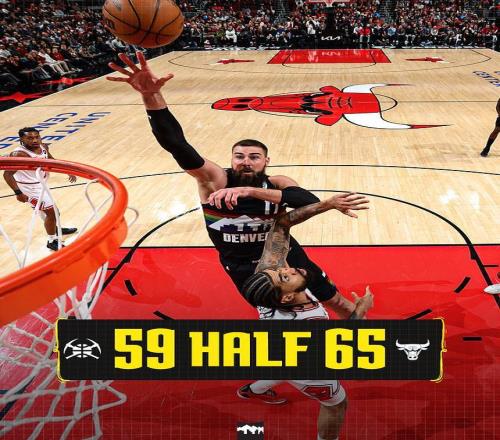 中場休息回來,雙方進攻火力升級均是本場第二次單節35+展開對攻,掘金被拉開64-73落后,掘金內外開花回敬一波12-3攻勢追到76-76。雙方持續緊咬比分纏斗至掘金89-88領先,掘金連得6分擴大優勢,公牛打出一波15-2攻勢反超比分,掘金單節38-39再輸1分,三節結束掘金97-103落后公牛。前三節比賽,掘金三分命中數12-18落后,約基奇17+13+12與穆雷22+10,引領4人得分上雙,公牛已經多達7人得分上雙。
