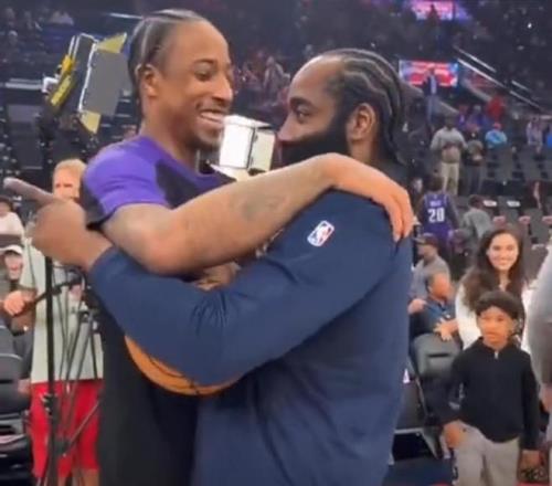 2021年,當哈登因腿筋傷勢掙扎于季后賽,德羅贊在采訪中力挺好友:“人們只看到他的胡子和大合同,卻忽視了他為勝利付出的一切。”