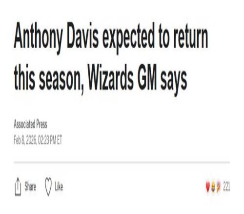 反轉!奇才總經理宣布濃眉本賽季能復出此前有報道稱他提前報銷