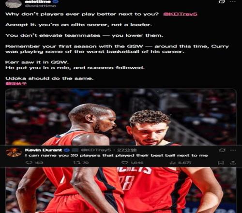 賽后面對他只是一名得分手,而非讓隊友變得更好球隊領袖的質(zhì)疑時,杜蘭特回擊到:“我能輕松列舉出20位在我身邊打出巔峰表現(xiàn)的球員。”