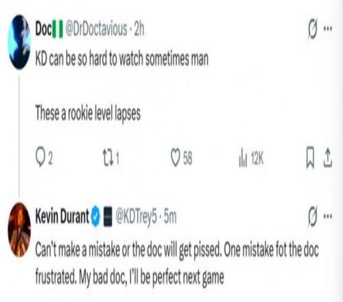 在瘋狂回懟網(wǎng)友的同時,杜蘭特也虛心接受了控制失誤的建議,表態(tài)自己下一場會做到完美。