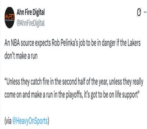 美媒表示,如果湖人本賽季戰績不佳,新老板是否真的還會支持佩林卡,這就很難說了。