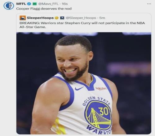 勇士主帥科爾宣布:庫(kù)里將缺席2026年NBA全明星賽......