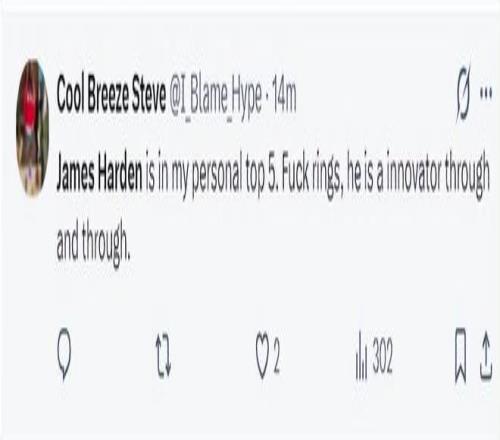 騎士球迷:哈登在我心目中一直以來都是聯(lián)盟前五的球員,別管什么獎杯了,他就是一個勇于創(chuàng)新的球員。