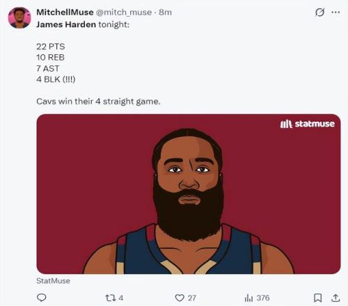 騎士媒體:詹姆斯-哈登多次封蓋,多么出色的防守,他再一次在末節(jié)發(fā)光發(fā)熱。