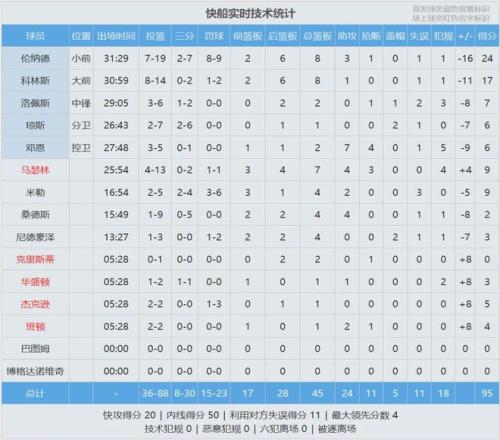 杜蘭特22中8得26分6板3斷5失誤,申京14中9拿到22分7板5助3失誤,謝潑德10中6拿到16分6板4助4失誤。倫納德19中7得24分8板3助1斷,連續(xù)32場(chǎng)砍下20+。馬瑟林13中4拿到9分7板4助3斷,手感一般,但是在場(chǎng)上活力十足。