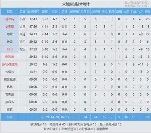 此役過后,火箭升至西部第三,落后第二的馬刺3個(gè)勝場(chǎng)。最后看看數(shù)據(jù):