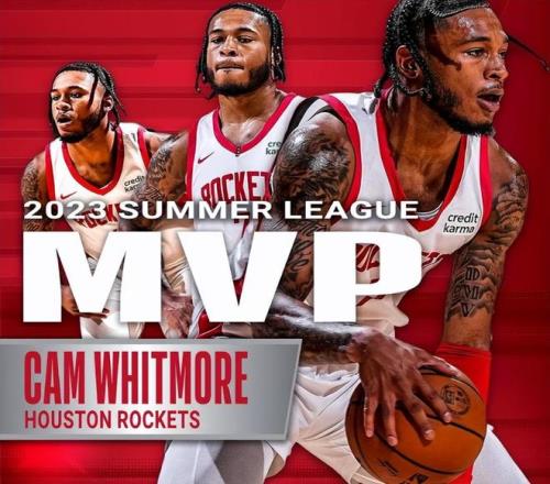 加盟火箭后,惠特莫爾在新秀賽季立即展現(xiàn)了巨大潛力。2023年夏季聯(lián)賽,他在5場比賽中場均31.5分鐘可以砍下20.4分、5.6個(gè)籃板、2.2次助攻和3次搶斷,不僅入選夏季聯(lián)賽最佳陣容第一陣容,還當(dāng)選了夏季聯(lián)賽MVP。