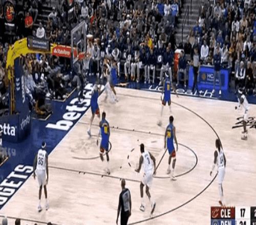 哈登策劃的遠射太嚇人,加上哈登和米球同時在,掘金必須擴防,于是加雷特·阿倫兩個內切追近。