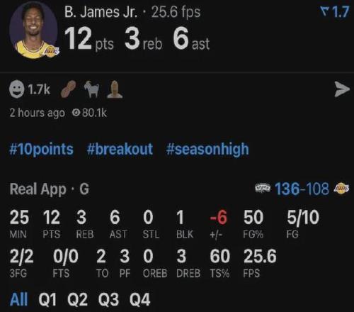 值得一提的是,“太子爺”今年以來,三分球合計8中6,命中率達到75%湖人隊內最高。