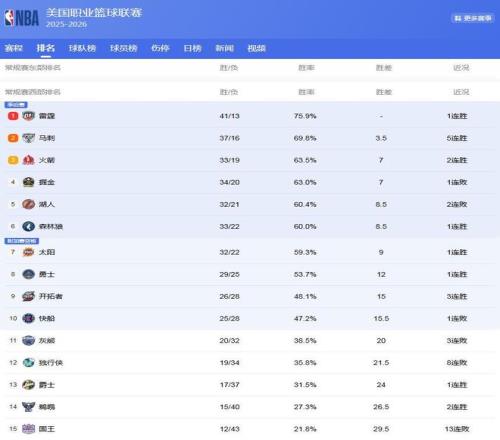 西部排名的競爭,還是很激烈的!雷霆隊雖然在下滑,但是憑借著前期建立的巨大的戰績領先,目前仍然領先西部第2的馬刺隊3.5個勝場,西部第1的位置暫時無虞!
