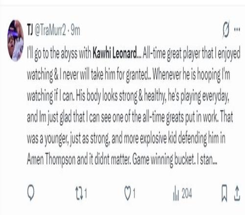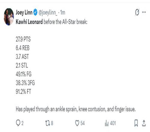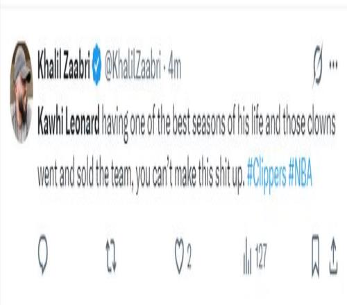 NBA記者Khalil Zaabri賽后寫道:卡哇伊打出了職業生涯最高光的一個賽季,但快船管理層那些蠢材卻送走了多位核心球員,這簡直太荒唐了。