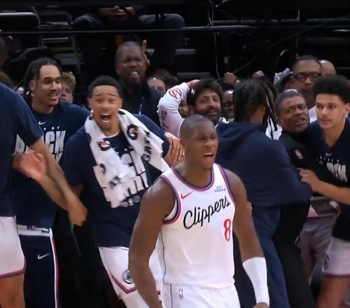 小卡命中這個準絕殺的2+1后快船替補席沸騰了,多人都捂頭、跳躍、險些沖入場內,小卡實在是太神奇了,這就是戰神卡的魅力吧。