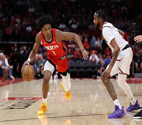 本場比賽中,火箭的先發控衛阿門-湯普森(Amen Thompson)的表現又一次令人大跌眼鏡。阿門全場出場40分49秒,投籃8中5,三分線外1中0,罰球2中2,得到了12分6籃板5助攻1搶斷的數據,還有3次失誤和2次犯規,正負值為-2。阿門在進攻端對于球隊的負面影響依然非常明顯,他的得分能力依然比較有限,外線投籃方面的短板依然明顯。事實上,阿門在組織和串聯進攻的表現也是令人失望的,他的技術相當粗糙,控運球能力都嚴重不足。不可否認,阿門在防守端非常努力,起到了一定的作用,但是他在進攻端對于球隊的負面影響也是肉眼可見的。很顯然,阿門應該在進攻端做得更好一些才行。