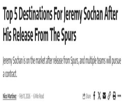 馬刺裁掉9號(hào)秀!索漢5大下家候選出爐:湖人壓哨入選太陽(yáng)高居第一