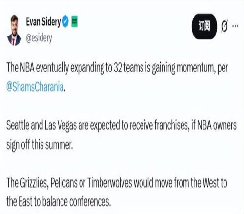 如果NBA最終投票通過擴軍,聯盟將擁有32支球隊。更關鍵的是,如果新增的是西雅圖與拉斯維加斯兩隊,它們都將歸入西部,這意味著至少要有一支球隊遷至東部,才能讓東西部各有16支球隊。從地理位置看,最合理的遷移候選是:灰熊(孟菲斯)、森林狼(明尼蘇達)或鵜鶘(新奧爾良)。