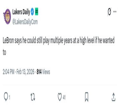 最后詹姆斯坦言只要自己愿意,仍能以高水平狀態繼續征戰多個賽季。