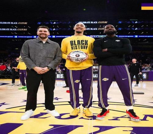 湖人3位球員賽前領取全明星專屬花球,其中東契奇與詹姆斯參加全明星正賽,海斯參加扣籃大賽。