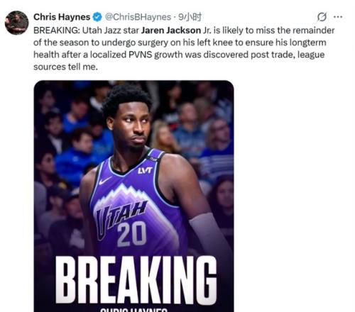 而更離譜的還在后續,此前爵士官方突然宣布,小賈倫接受手術,本賽季報銷;甚至還額外補充了一句,早在交易體檢時,爵士就知道他有傷在身了。