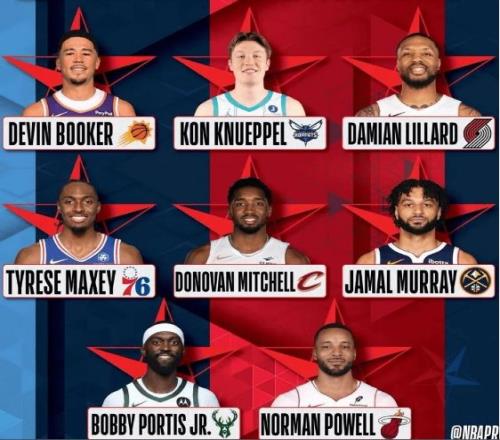 預(yù)賽當(dāng)中得分排名前三的球員,分別是布克30分,利拉德與克努佩爾均是27分,3人攜手晉級決賽。