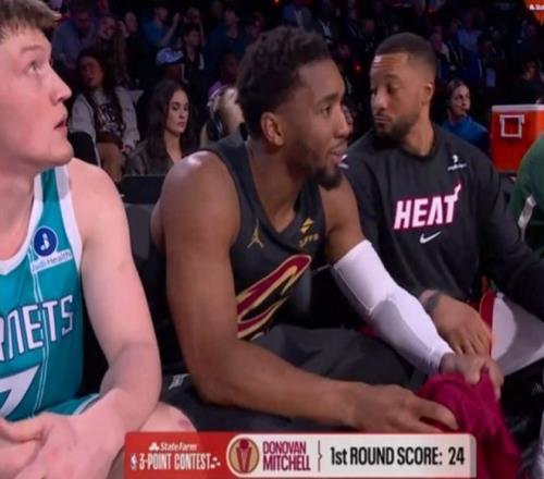 第二位登場的是騎士球星米切爾,他第一個點五連中,右側(cè)弧頂5中4包括花球,隨后超遠(yuǎn)球不中。米切爾中路弧頂命中3球包括花球,隨后左側(cè)超遠(yuǎn)球不中,左側(cè)弧頂5個花球只進(jìn)2球,最后一個底角命中4球,最終得到24分。