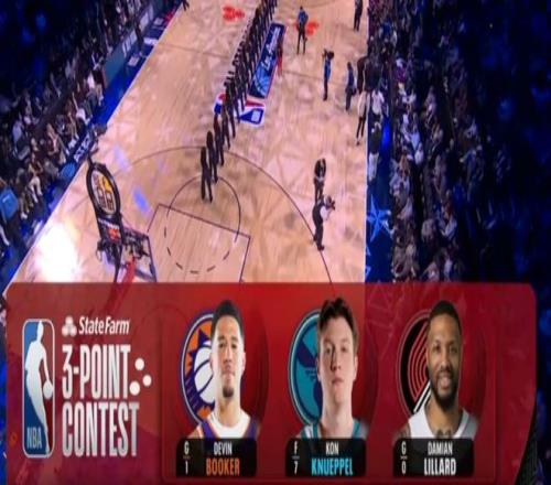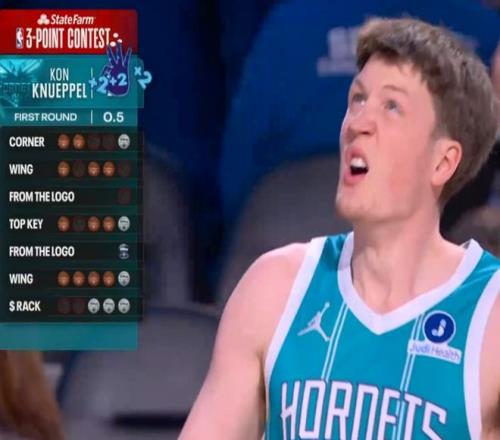 預(yù)賽比拼,第一位登場的是黃蜂新秀克努佩爾,他在第一點命中3球包括花球,第二個點命中3球,隨后超遠(yuǎn)球不中,中路弧頂命中4球,隨后右側(cè)弧頂超遠(yuǎn)球。克努佩爾之后側(cè)翼5連中手感火爆,底角命中3個花球,成功得到27分表現(xiàn)出色。