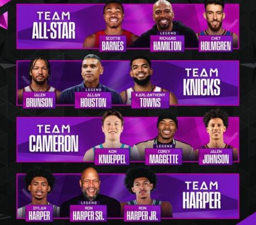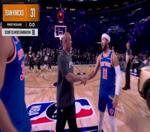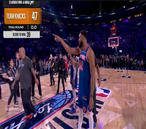 尼克斯隊第四位登場,布倫森、唐斯攜手隊史名宿阿蘭-休斯敦出戰,他們前幾個點表現出色連續得分,右側弧頂接連打鐵,中路唐斯命中,底角中距離阿蘭-休斯敦命中,中圈四分點唐斯與布倫森連續進球,尼克斯隊得到31分,攜手24分的卡梅隆隊晉級決賽。