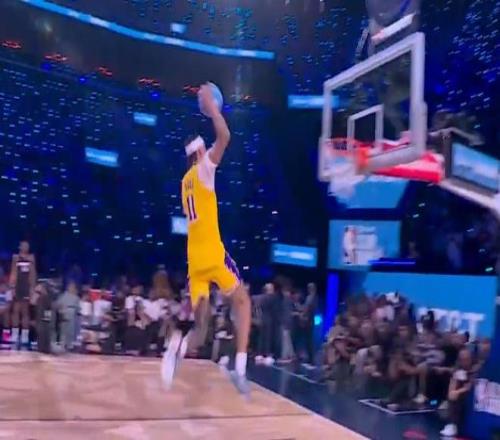 首輪布萊恩特率先登場,第一扣是360度大風車,得到45.6分。理查德森隨后登場,自己將球拋出,跟上接球拉桿背扣,拿到45.4分。