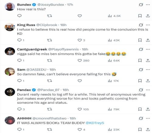 評論區的球迷們對這些言論多數是存疑的,但也有一些人覺得這像是杜蘭特的作風,希望杜蘭特本人回應來辟謠。