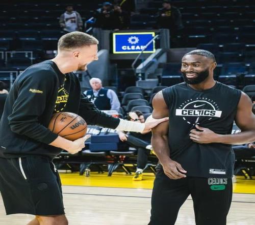 凱爾特人官方曬出賽前布朗與波爾津吉斯互動照片,并配文寫道“這是我們想看的。”
