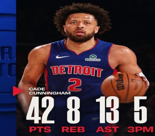 ——活塞隊史名宿不少了,坎寧安是第一位單場得到40分+10助攻+5三分的球員